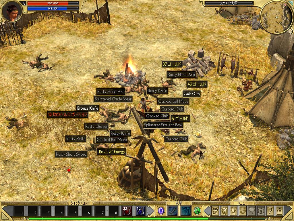 Diabloに比べるとアイテムのドロップ率は高めで、使えるアイテム、使え無いアイテムを問わずボロボロ出てくる。
