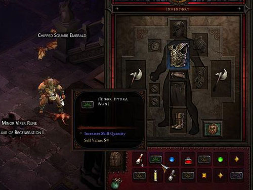 装備欄は一見するとDia2とそっくりだが、肩部分の装備が増えてる点に注目。