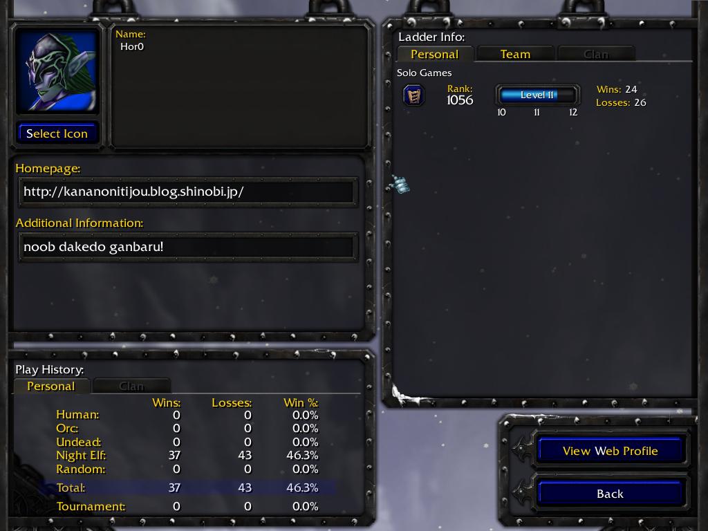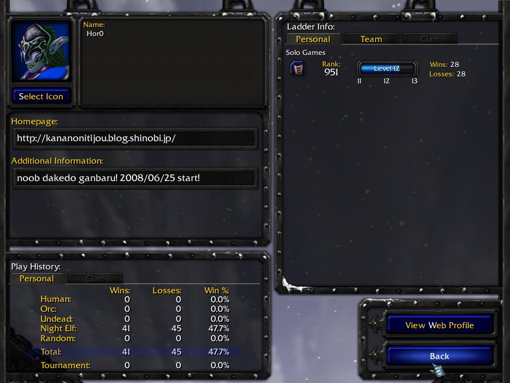 でも、BN(Battle Netの略称、WC3のマルチ)に中級者として認められてきたのか始めたばかりと思しき人とも当たる様にもなってきた。