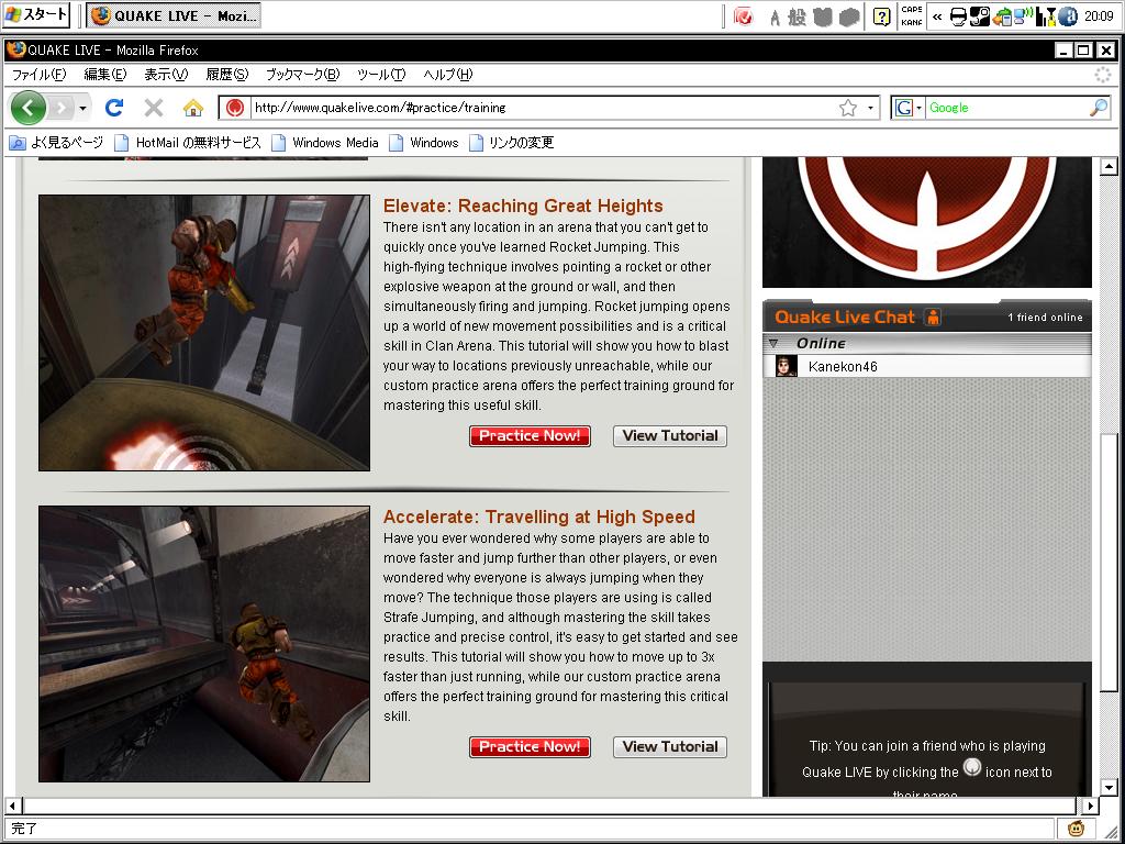 人見知りな私は軽く挨拶してスルーを決め込み、そそくさとQuake Live開始。