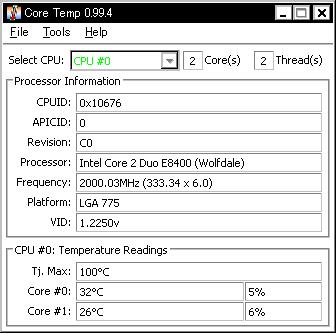 ちなみにE8400なのに2GHz表示なのはEISTの省電力機能による可変クロックのため(念のために書いておくと…)。