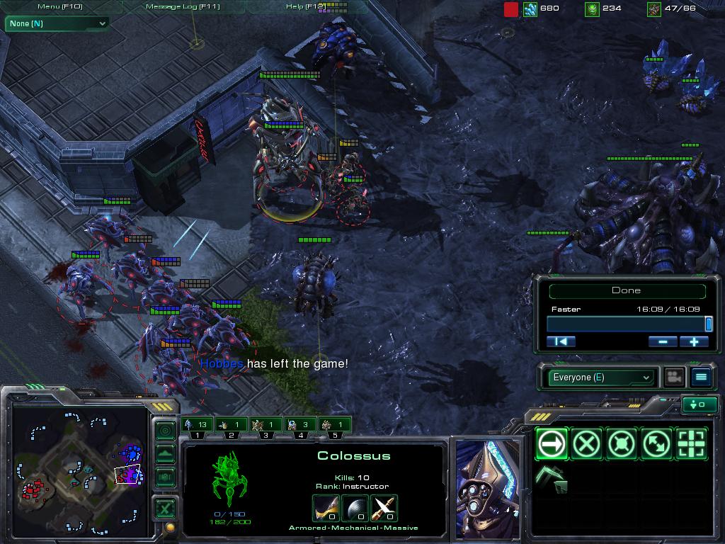 Colossusが出て、一気にZerglingをなぎ払いgg