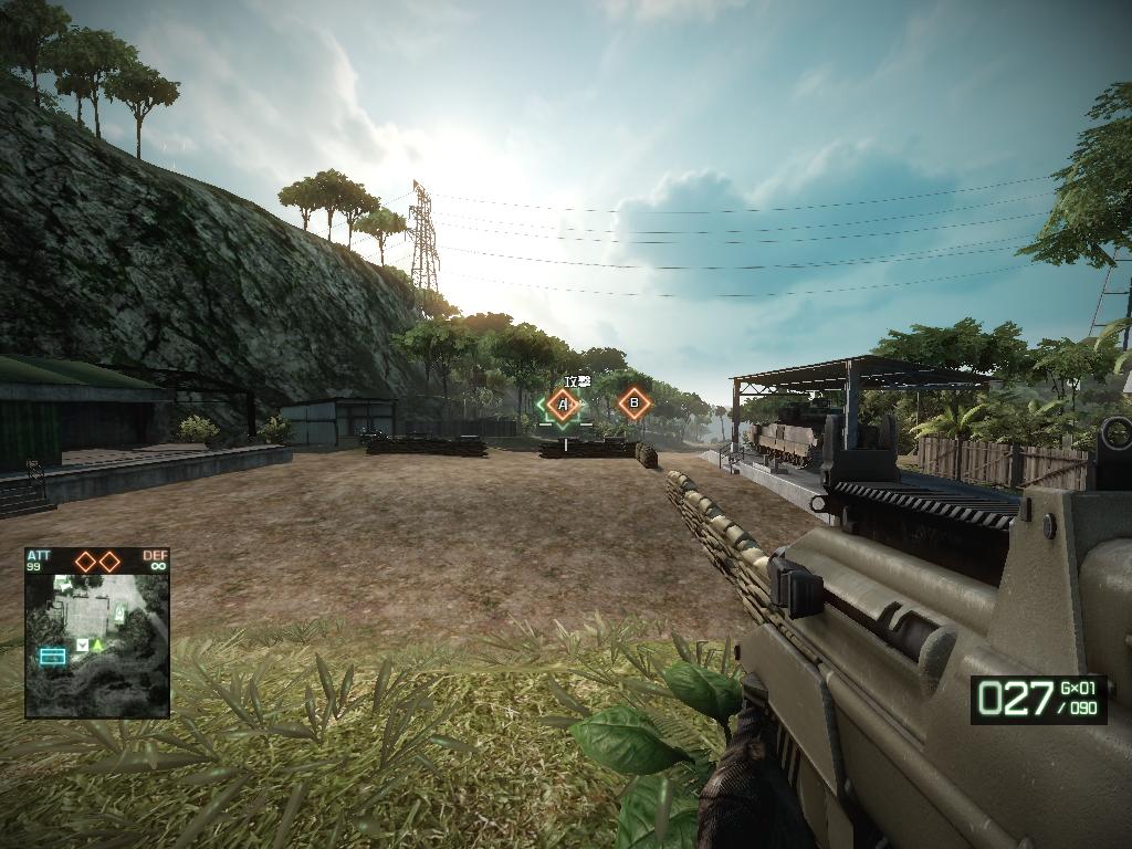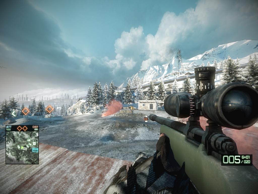 BFBCの特徴で有る建物破壊の他にそこら辺に生えている樹木まで砲撃で吹っ飛び、折れる。Round終盤になると山が丸裸になってたり。