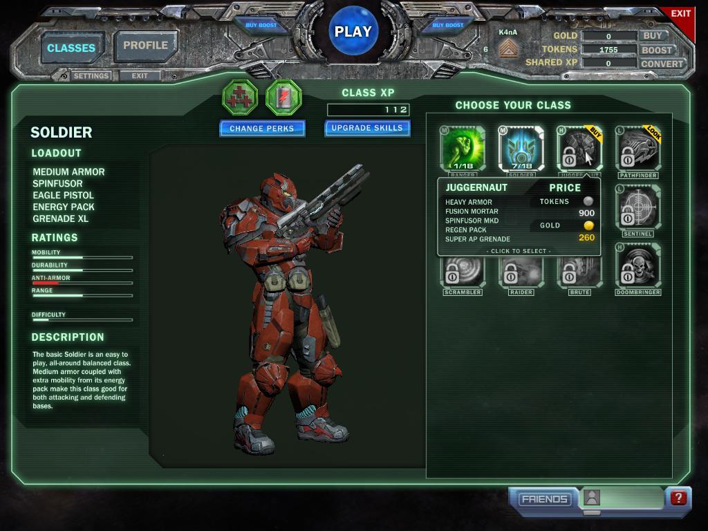 一戦プレイする度に各ClassのEXPと、共通のTokenを得られ、このTokenを消費することにより、新たなClassをUnlockする事が可能になっている。